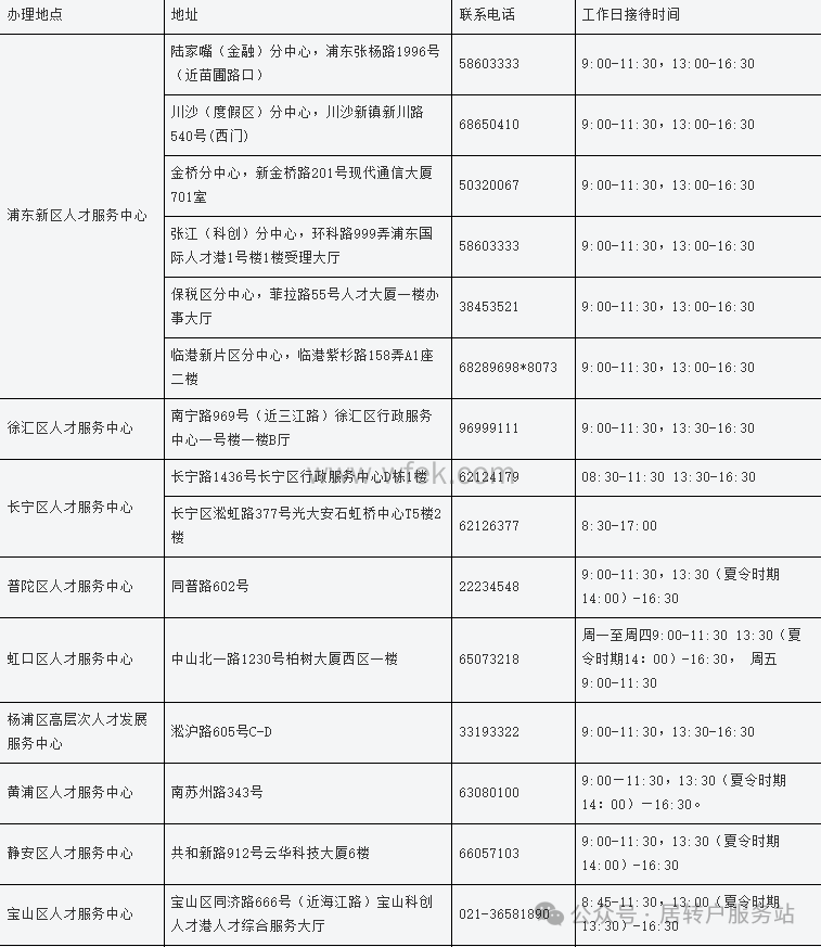 上海市各区人才服务受理中心都有具体的地址、电话和接待时间,积分申请人可通过拨打对应人才服务中心的电话或亲自前往线下咨询积分办理进度。