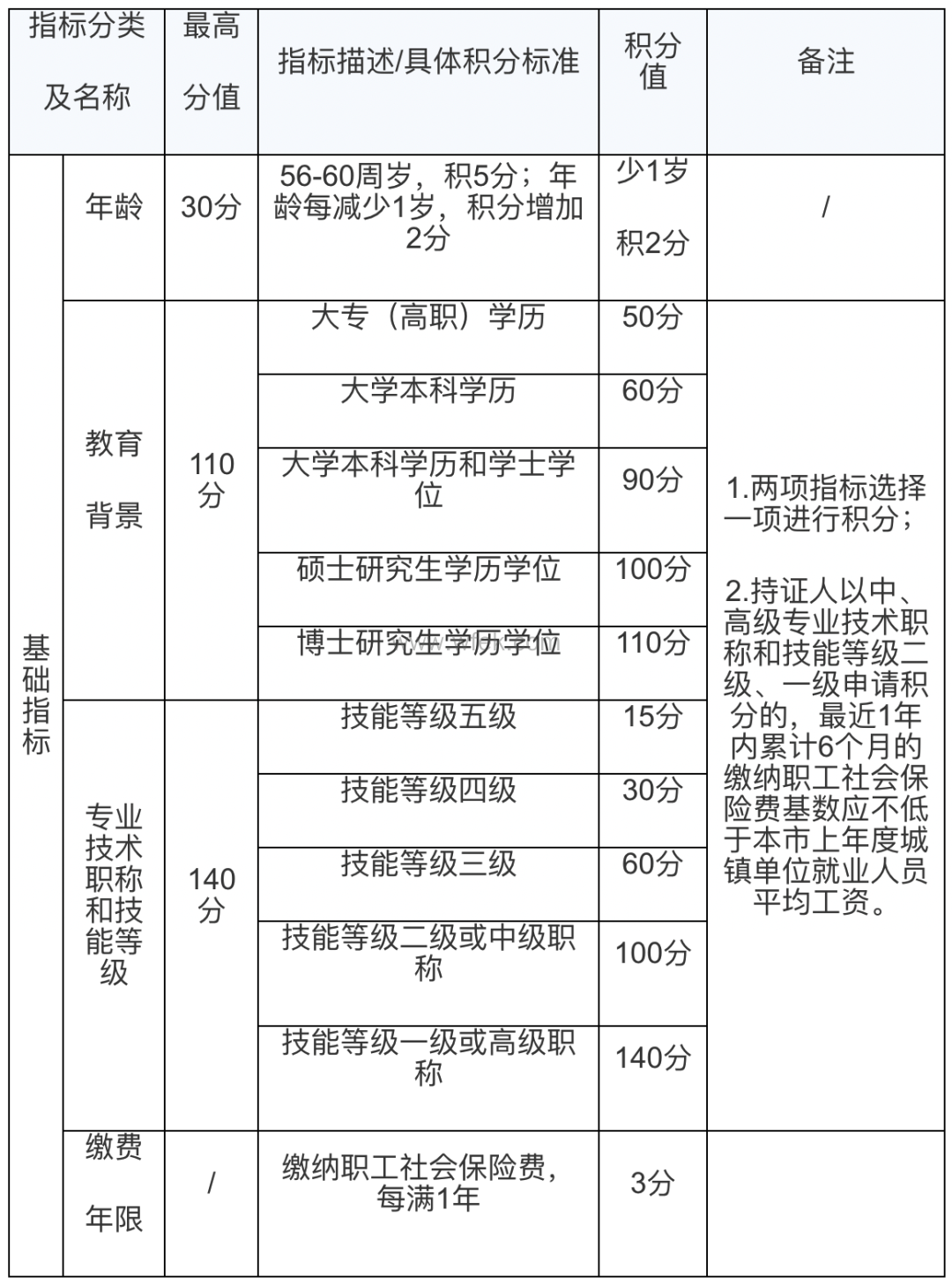 专业技术职称和技能等级指标最高分值140分。持证人在本市工作期间取得的专业技术职称证书、专业技术人员职业资格证书和技能人员职业资格证书或职业技能等级证书(以下简称“技能等级证书”)且专业、工种与所聘岗位相符,可获得积分。具体积分标准如下:
