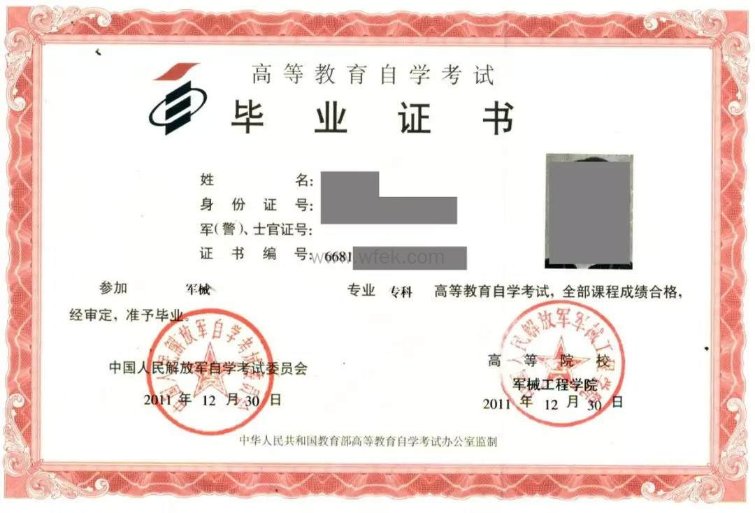 解放军自考委自学考试毕业证书,无参军服役经历。该学历教育背景存疑。