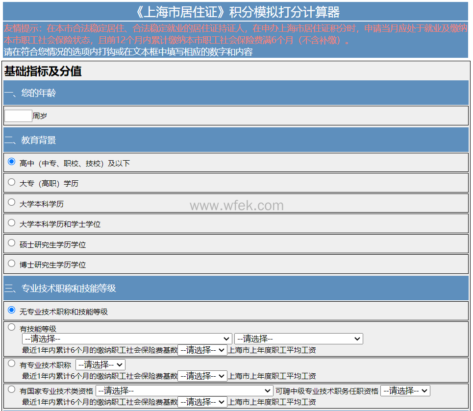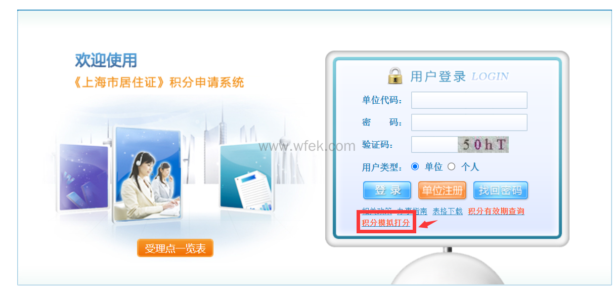 1、上海积分达标查询入口:积分模拟查询(点击自测)