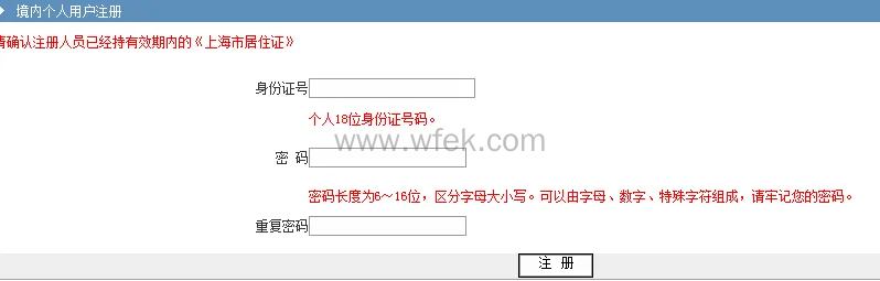 输入用户名即申请人的身份证号码,并为其设定个人初始密码,供其今后续申请积分和网上查询使用(下图)。