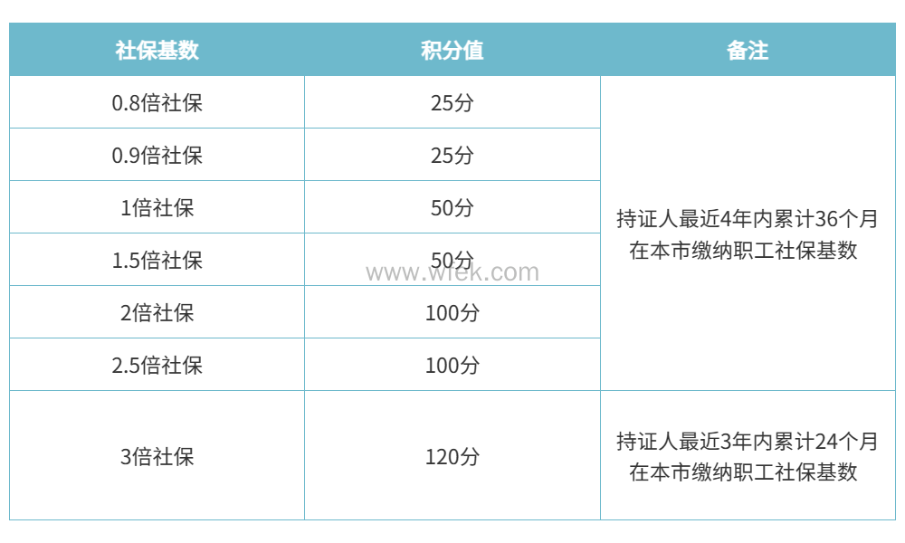 *注意:要求是在4年内累计的社保月份,如果前两年按照1倍社保缴纳的,后一年半少于1年社保基数,那么后期需要再缴纳1年半的1倍社保才能达到要求。