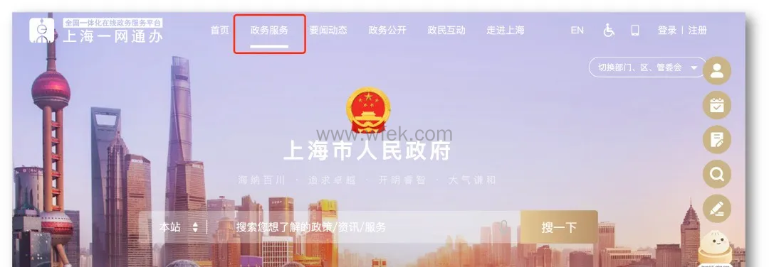 1、登录一网通办:https://zwdt.sh.gov.cn/govPortals/index.do
