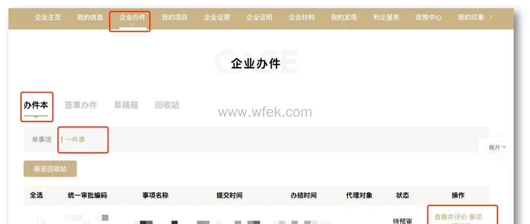 11、点击【企业办件】、【一件事】、【办理进度】即可查询办理进度