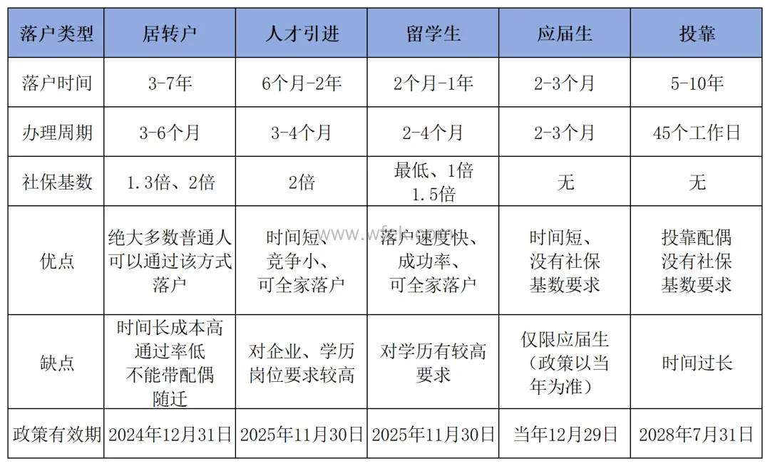 缺点:落户周期长,竞争激烈