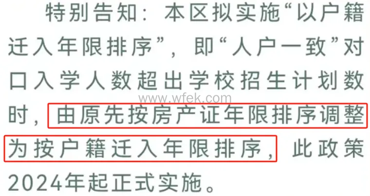 而到了今年,这一政策已经发生了变化,现在是根据户籍迁移到该区域的时间长短来安排入学优先顺序。