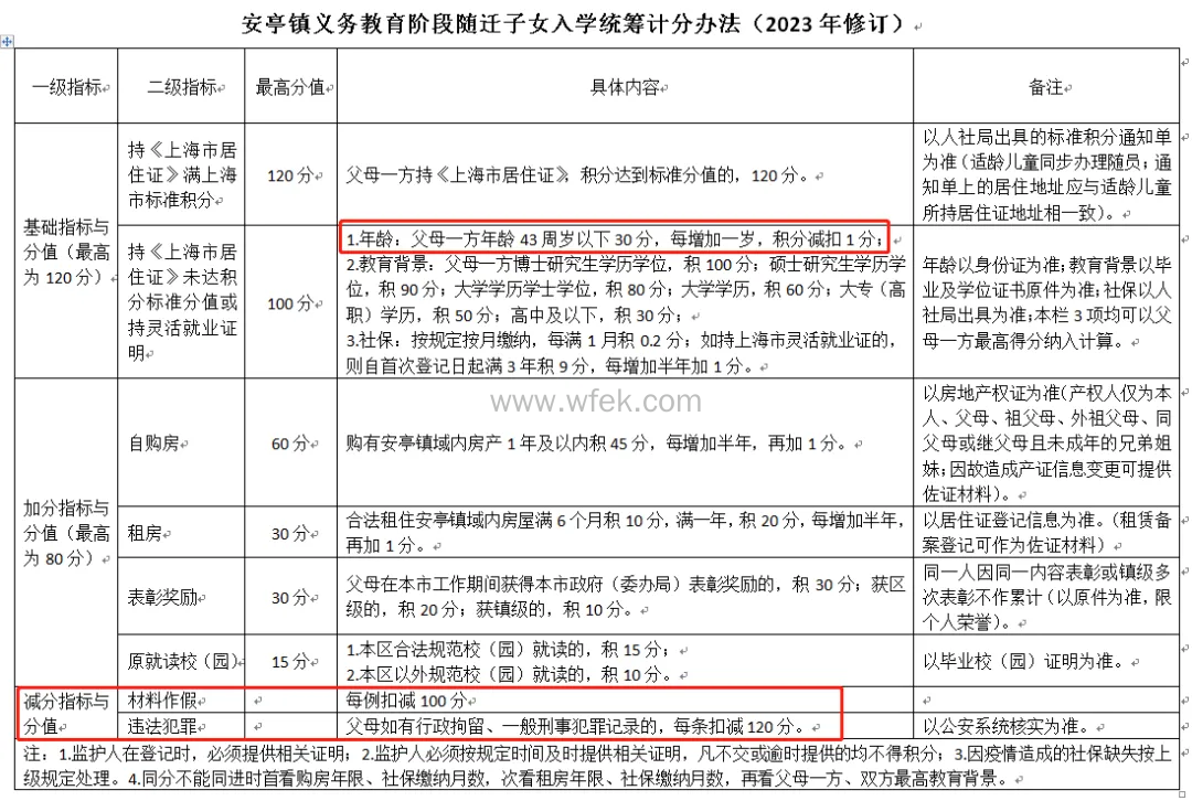 计分办法中,还对父母年龄作出了要求,超过43岁,每增加一岁,积分减扣一分。
