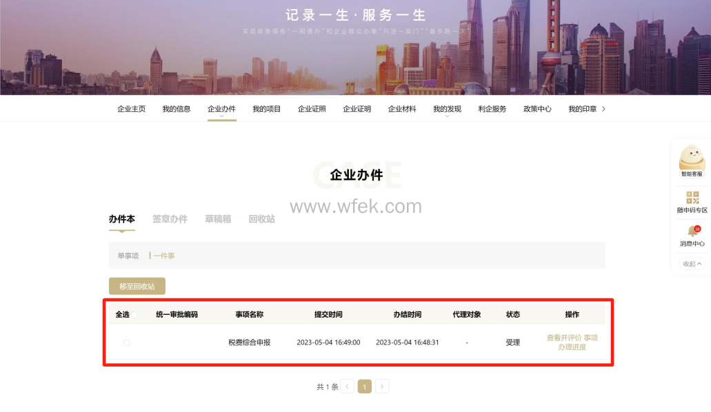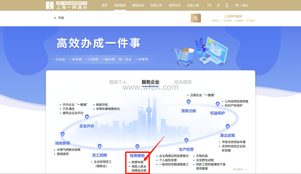 2.在特色专栏中选择高效办成一件事→服务企业→税费缴纳