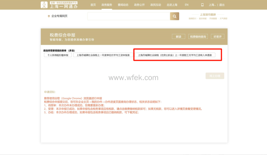 3.选择上海市城镇社会保险(住房公积金)上一年度职工月平均工资收入申请表