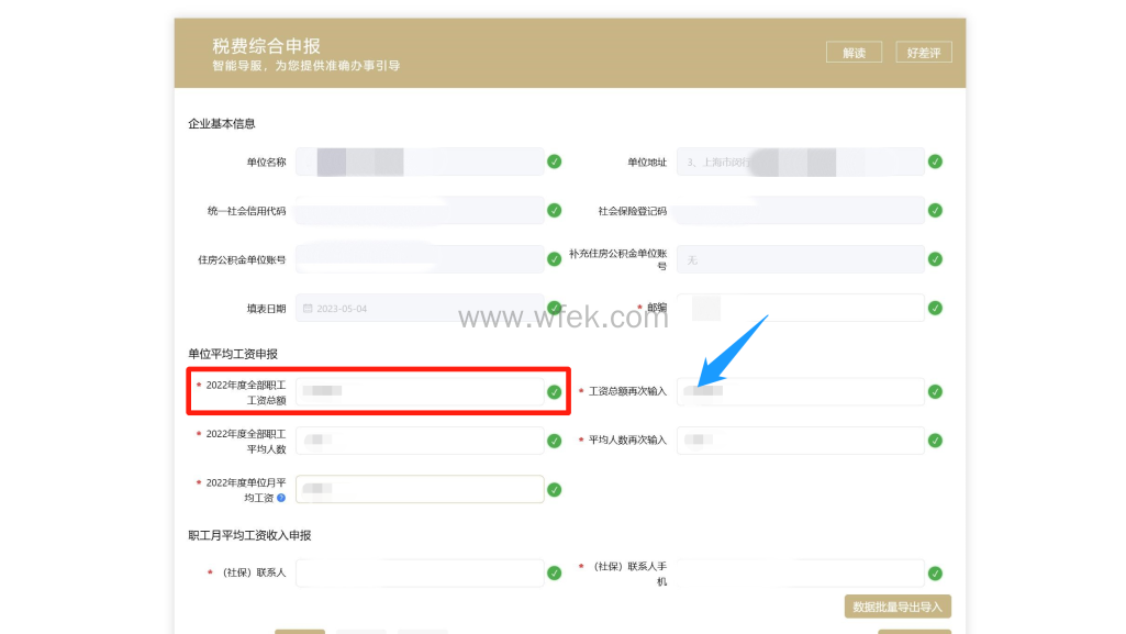 申报重点:2022年度职工工资性收入;2022年度单位月平均工资