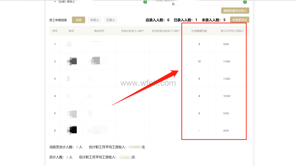 6.分别申报12月底非在册人数和1-6月新进转入人员